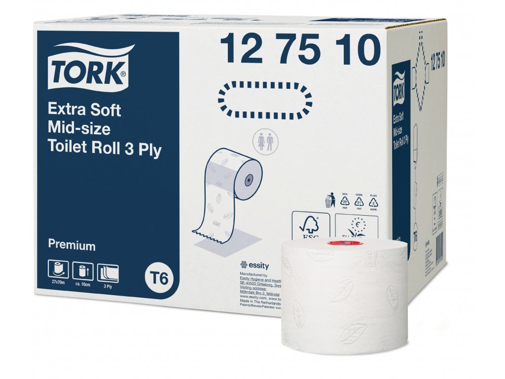 Prémiový Tork Mid-Size extra jemný toaletní papír nabízí prvotřídní vzhled a pocit na dotyk v kombinaci s odpovídající kvalitou.