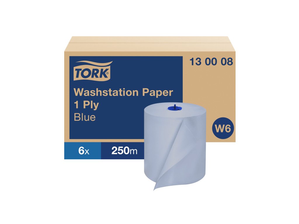 TORK 130008 – Papírová utěrka universal do vodotěsného zásobníku W6, 1vr., 250 m, modrá, 6 rl. - Karton