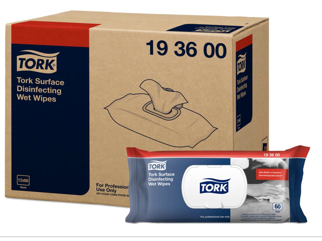TORK 193600 – Vlhčené ubrousky na dezinfekci povrchů, 12 x 60 ubr. - Karton